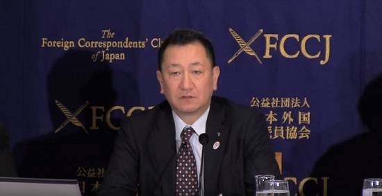 | ▲ 일본 정부는 후쿠시마 원전사고 후 소아갑상선암 환자가 급증하는데도 방사능 영향과의 인과관계를 인정하지 않고 있다. 2016년 3월 7일 일본외국특파원협회 주관 동일본대지진 5주년 기자회견에서 정부 입장을 대변하고 있는 호시 호쿠토 후쿠시마현 건강조사 검토위원장. |