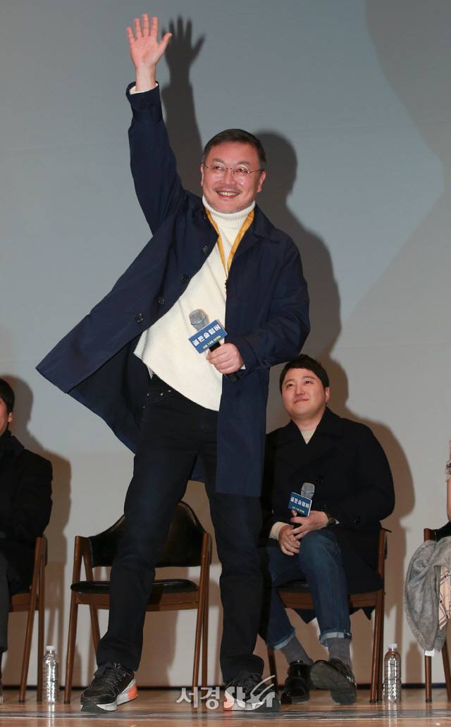 [서울경제] 배우 김의성이 12일 오후 서울 종로구 성균관대학교 새천년홀에서 열린 영화 ‘골든슬럼버(감독 노동석)’ 최초 토크 콘서트 시사회에 참석하고 있다.