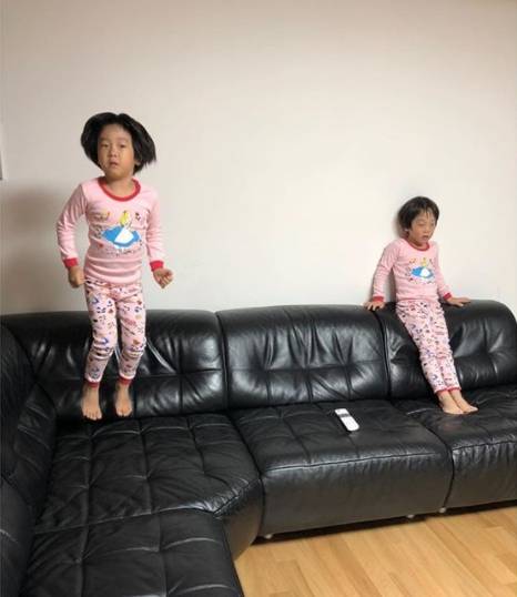 사진 속에는 핑크색 커플 내복을 입고 있는 서언, 서준의 모습이 담겼다. 서준은 소파 위에서 뛰며 여전한 장꾸 모습을 보여줘 특히 눈길을 끈다.