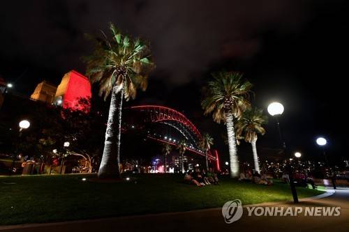 epa06531957 The Sydney Harbour Bridge lit up with red lights to celebrate the Chinese New Year in Sydney, Australia, 16 February 2018. Sydney's iconic bridge and opera house are glowing red, signifying the beginning of the largest Chinese New Year celebrations outside of Asia. The Chinese New Year, the Year of the Dog, begins on 16 February 2018 and ends on 04 February 2019. EPA/JOEL CARRETT AUSTRALIA AND NEW ZEALAND OUT