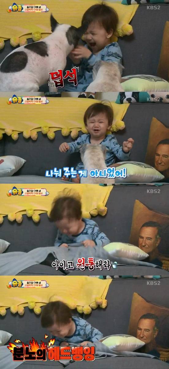 '슈돌' 윌리엄, 강아지에게 뻥튀기 빼앗기고 '분노의 헤드뱅잉'