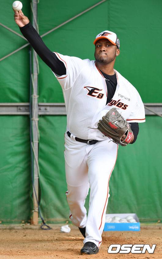 이날 샘슨의 최고 구속은 149km. 하지만 그는 "현 상황에서는 구속에 신경쓰기 보다 시즌 전까지 피칭 메커니즘을 더 완벽하게 만드는 게 더욱 중요하기에 크게 신경쓰지 않는다"고 말했다. /what@osen.co.kr