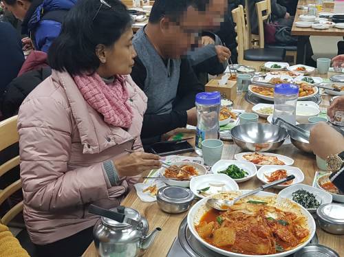 | 지난 9일 이슬람교 신자 릴릭(47)이 강릉의 한 할랄 음식점에서 해물전골을 먹고 있다. 안승진 기자 |
