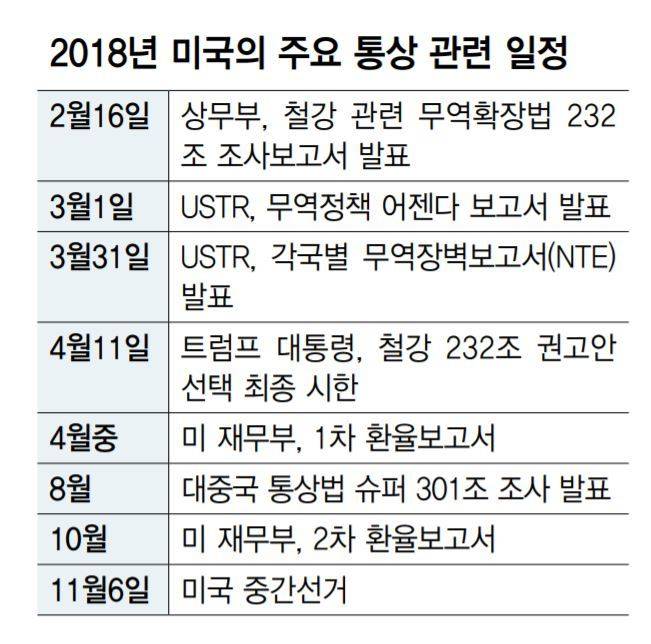 미국의 잇따른 한국산 수입규제에 따라 우리나라 총수출에서 미국시장이 차지하는 비중은 2016년 13.4%에서 지난해 12.0%(686억달러)로 줄었다. 반면 지난해 미국산 제품의 한국시장 수입(506억달러)은 1년 전보다 17.2%가량 대폭 늘었다. 이희성 과장은 “미국산 제품 수입을 늘려주고 있는 우리의 적극적 성의 표시도 미국에 전혀 먹혀들지 않고 있다”며 “오는 11월 미국 중간선거까지는 통상 강경 기조가 더 강화되고 수입규제 적용 품목도 확대될까 우려된다”고 말했다.