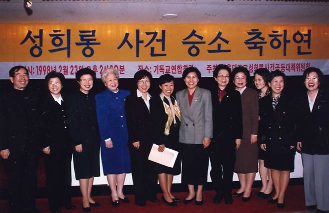 | ▲ 1998년 2월 23일 기독교회관에서 열린 서울대조교 성희롱사건 승소 축하연. |