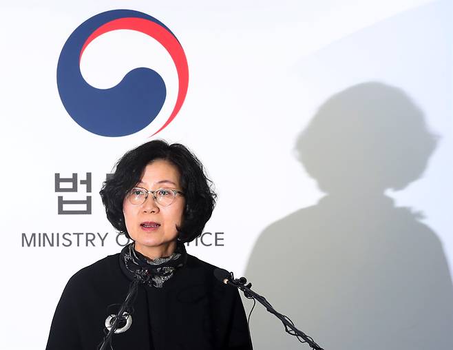 | ▲ 권인숙 성범죄 대책위원장이 2일 오후 정부과천청사에서 열린 '법무부 성범죄 대책위원회' 발족 및 법무부 장관 입장발표 기자회견에서 발언하고 있다. 2018.2.2 |