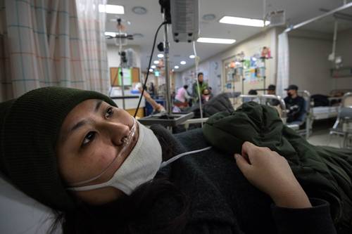 | 폐 기능 저하로 입원한 안은주 피해자. |