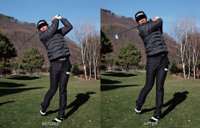 → 임팩트 이후 뿌려주는 동작이 상당히 좋다. 하지만 타이밍이 맞지 않은 상태에서 채찍질하듯 손목을 사용하면 악성 훅, 푸시 볼이 유발될 수 있다.