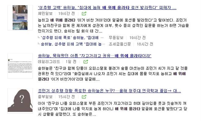 | ▲ 송하늘 씨의 폭로 이후, 피해자의 정보를 알리고 자극적인 묘사를 일삼는 기사들이 이어졌다. |