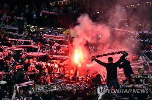 epa06565369 Parisians supporters react during the French Ligue 1 soccer match between Paris Saint-Germain (PSG) and Olympique de Marseille at the Parc des Princes stadium in Paris, France, 25 February 2018. EPA/CHRISTOPHE PETTIT TESSON