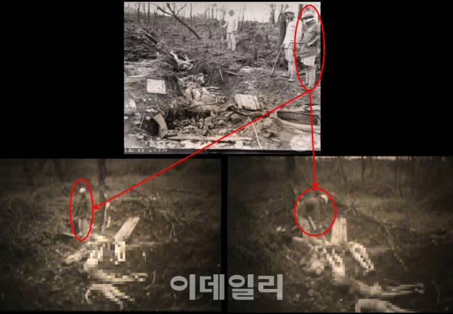 연구팀은 2017년 발굴한 영상과 2016년 수집한 사진원본이 각도만 다를 뿐 동일한 장소에서 촬영된 것을 입증할 수 있는 근거로 영상과 사진 속 시체의 옷차림, 매장을 하러 온 것으로 보이는 사진 속 중국군 병사가 영상 속에도 등장하는 점 등을 제시했다.