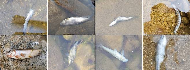| ▲ 영풍제련소 하류 20킬로미터 지점의 봉화군 분천면 낙동강에서 발견된 죽은 토종물고기들. |