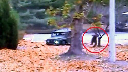 | 북한병사, MDL 넘어 오는 장면 지난해 11월 귀순한 오청성(붉은 원안)씨가 판문점 공동경비구역(JSA)에서 타고 온 지프 차량을 버리고 군사분계선(MDL)을 넘어 남쪽으로 내달리고 있다. 국방부 제공 |
