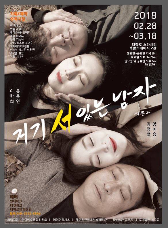 한편, 연극<거기 서 있는 남자> 는 대학로 후암스테이지(구, 스타시티) 2관에서 3월 18일까지 쉬는 날 없이 공연한다. 거기>