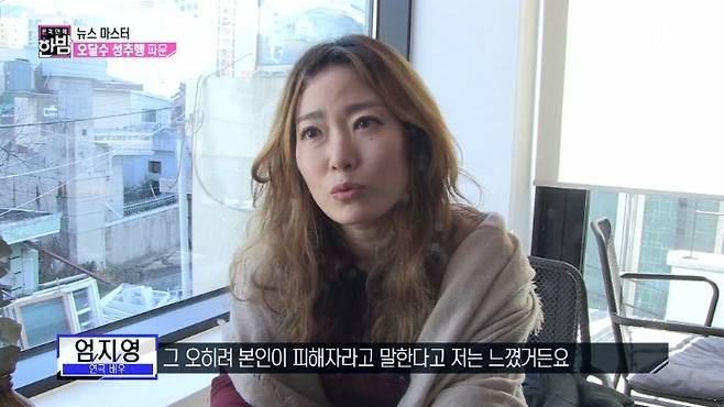 엄지영 씨는 '한밤' 제작진과 만나 "사과의 의미가 잘 전달된 것 같냐"는 질문에 "전혀 그렇지 않다. 오히려 본인이 피해자라고 말한다고 느꼈다. 난 전혀 기억이 잘 나지 않지만 이런 이야기들. 자기 자신이 겸허한 사람이라고 미화하고 있다고 느꼈다"고 지적했다.