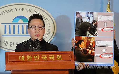 (서울=연합뉴스) 이정훈 기자 = 정봉주 전 의원이 자신을 겨냥한 성추행 의혹과 관련해 12일 국회 정론관에서 기자회견을 열고 입장을 밝히고 있다. 2018.3.12
