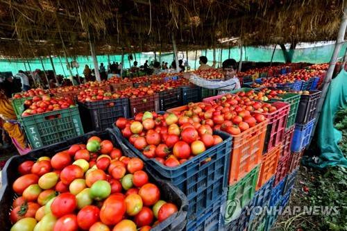epa06603839 An Indian worker sorts out tomatoes near a farm, at Aamon village in Seahore district, about 125km from Bhopal, India, 14 March 2018. According to the local farmers, they are getting very low rates of about two Indian Rupee (0.031 US dollar) per kilogram for their tomato production, due to that they are not even able to recover their input costs. They have no alternative other than disposing off the tomato or feeding it to the cattle. There has been a surge in production of tomato in the region whereas the demand is comparatively at a very low level. EPA/SANJEEV GUPTA