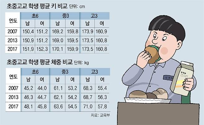 키는 제자리.. 옆으로만 자라는 초중고생