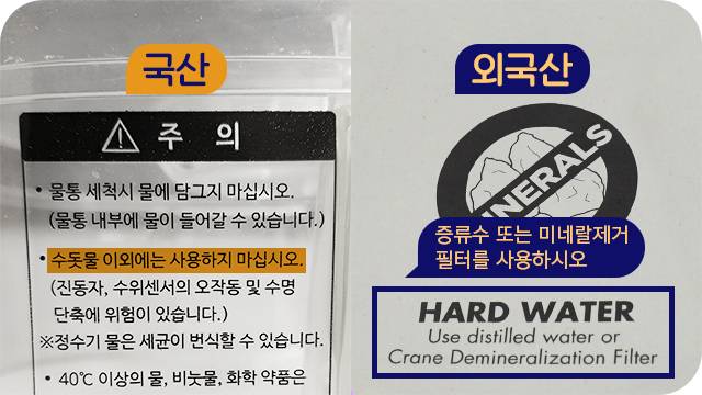 ■국산 가습기는 수돗물, 수입 가습기는 증류수?