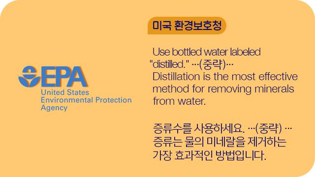미국 환경보호청 홈페이지에 들어가 봤다. 미국 정부는 가습기에 수돗물 대신 증류수를 쓰라고 권했다. 초음파 가습기가 수돗물 속 미네랄을 먼지로 뿌릴 수 있다고 경고했다. 또 이 미네랄이 이물질이 돼 미생물을 키울 수 있다고도 했다. 미국뿐 아니라 영국, 프랑스, 독일 등 여러 나라에서도 증류수를 사용해야 한다는 의견이 많았다.