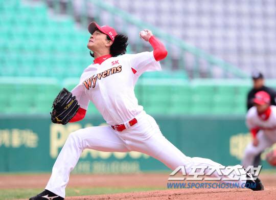 [포토] 김광현 '삼손처럼 힘찬 투구'
