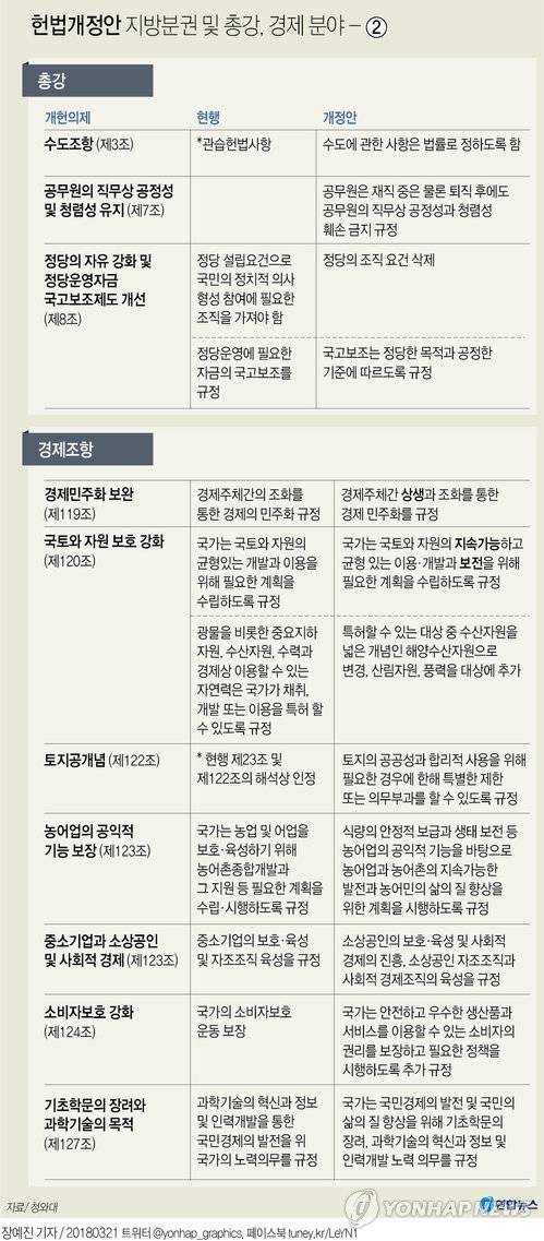 (서울=연합뉴스) 김승욱 박경준 기자 = 문재인 대통령의 개헌안에는 기존의 경제민주화 조항을 강화하는 내용이 포함됐다.