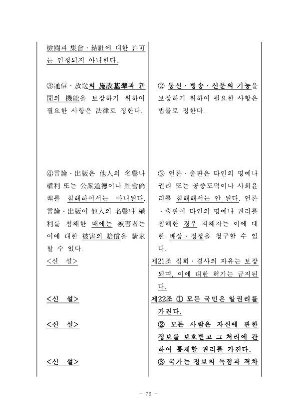 ③ 언론ㆍ출판은 타인의 명예나 권리 또는 공중도덕이나 사회윤리를 침해해서는 안 된다. 언론ㆍ출판이 타인의 명예나 권리를 침해한 경우 피해자는 이에 대한 배상ㆍ정정을 청구할 수 있다.