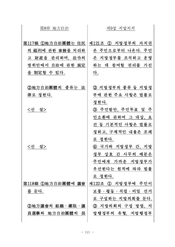 제121조 ① 지방정부의 자치권은 주민으로부터 나온다. 주민은 지방정부를 조직하고 운영하는 데 참여할 권리를 가진다.