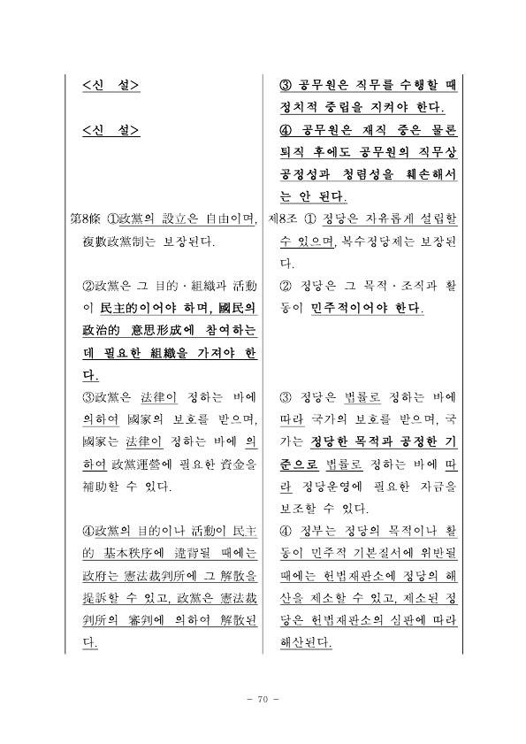 제8조 ① 정당은 자유롭게 설립할 수 있으며, 복수정당제는 보장된다.
