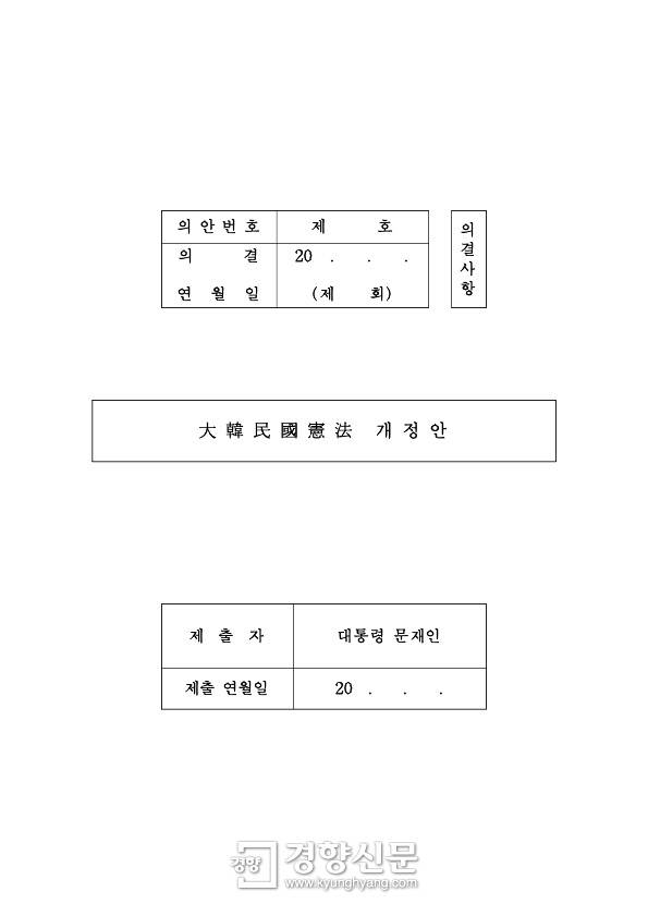 [경향신문] 청와대는 22일 대통령 권한 분산과 지방분권 등을 골자로 한 대통령 개헌안 전문을 공개했다.