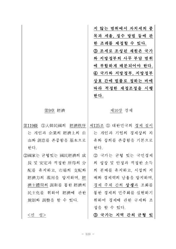 제125조 ① 대한민국의 경제 질서는 개인과 기업의 경제상의 자유와 창의를 존중함을 기본으로 한다.