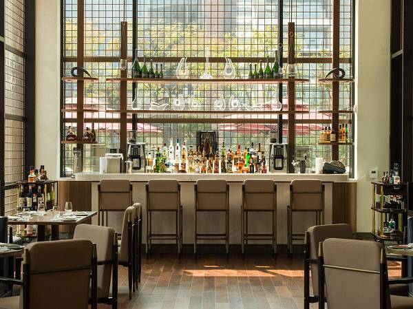 셰프 팔레트에서는 식사를 하는 공간도 남다르다. 세계적인 디자인 회사인 영국 데이비드 콜린 스튜디오가 1950년대 미드 센추리 풍으로 설계한 공간으로, 국내에서는 드물게 높은 층고의 공간감이 돋보이는 레스토랑이다.