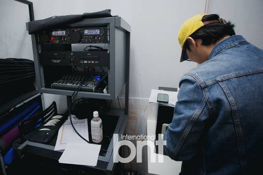 이스튜디오홀 뒷편에서 음향체크에 한창인 에스팀웍스 스태프.