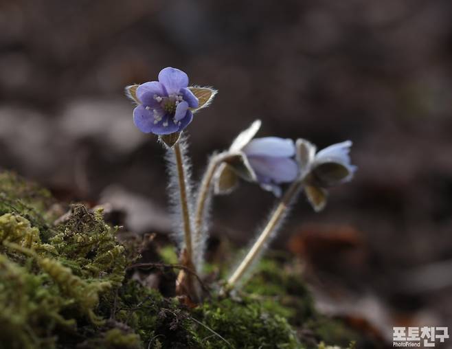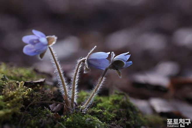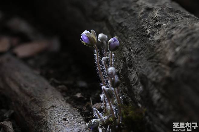 아직 잔설이 남아있던 계곡 한곁에 수줍은 듯 살포시 피어있던 자그마한 청노루귀.