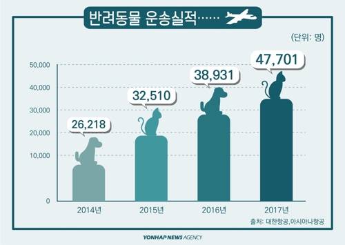 ◇지난해 반려동물 4만7천701마리 비행기로 이동