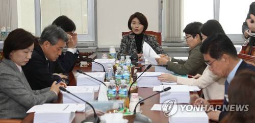 (서울=연합뉴스) 백승렬 기자 = 한정애 환노위 환경소위원회 위원장이 27일 국회 의원회관에서 열린 환경소위원회를 주재하고 있다. 이날 회의에서는 미세먼지대책 특별법안 등 대기환경 관련 법안 등을 심의했다. 2018.3.27
