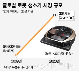 업계에서는 국내 로봇 청소기 시장 규모가 약 25만대 수준이며, 세계 로봇 청소기 시장 규모는 2009년 5억600만 달러(약 5375억원)에서 2020년에는 30억 달러(약 3조1900억원)까지 성장할 것으로 추정하고 있다.