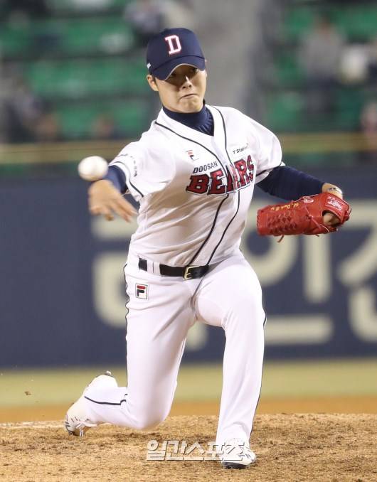 '2018 프로야구 신한은행 마이카 KBO리그' 두산베어스와 롯데자이언츠의 경기가 28일 오후 잠실야구장에서 열렸다. 두산 투수 박치국이 7회초 등판 역투하고있다.. 잠실=정시종 기자 jung.sichong@jtbc.co.kr /2018.03.28.