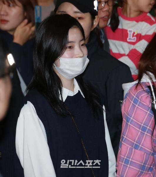 트와이스(나연, 정연, 모모, 사나, 지효, 미나, 다현, 채영, 쯔위) 다현이 팬들의 환호 속에 출국장으로 향하고 있다.
