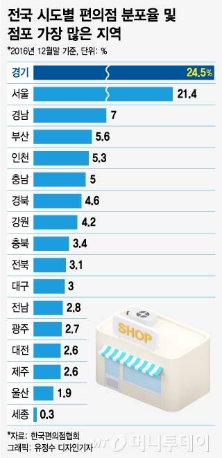 ◇입지·월세 따라 수입 천차만별…'오토점포' 돈 벌기 어려워=편의점 창업에서 가장 중요한 것은 입지 선정이다. 편의점을 찾는 수요가 많고 경쟁이 덜한 곳을 찾는 것이 유리하다. 국내 편의점의 절반 이상이 서울(21.4%), 경기(24.5%), 인천(5.3%) 등 수도권에 집중돼 있다.