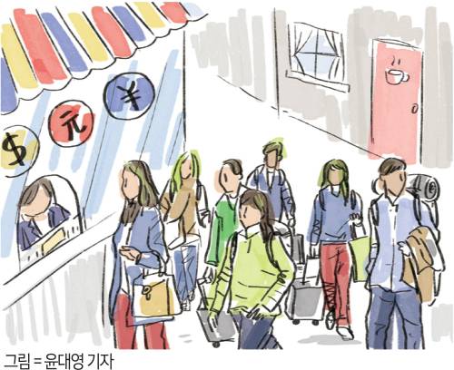 28일 오후 서울 마포구 망원동 망원우체국 앞. 택시에서 내린 남녀가 중국어로 대화하며 길가의 한 작은 건물에 들어섰다. 형형색색 화려하게 장식된 간판과 외벽 곳곳에 영어와 중국어, 일본어 등으로 ‘환전’이란 단어가 적혀 있었다. 한 달 전까지만 해도 볼 수 없었던 가게다. 지하철역 인근 평범한 도로변에 환전소가 생긴 것이다.