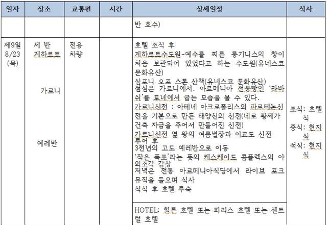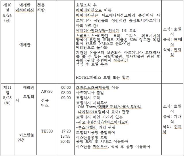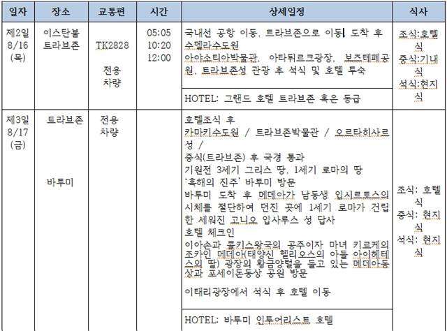 이번 [터키 흑해 연안의 트라브존과 코카서스의 조지아/아르메니아 2개국 여행 12일]의 개념도와 상세한 일정은 다음과 같습니다.
