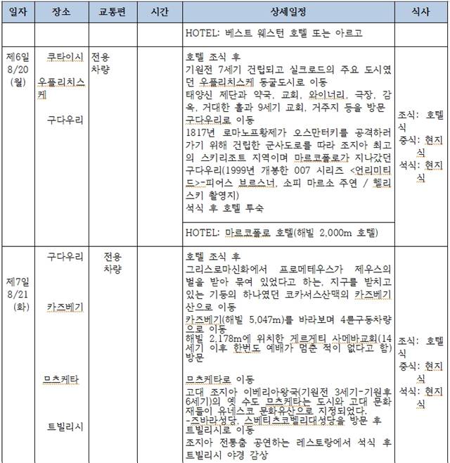 이번 여행에서 우리는 아직 우리에게는 신비로 가득 찬 이 지역을 둘러보려 합니다. 비록 짧은 여정이지만 이 지역의 역사와 문명을 이해할 수 있는 중심부는 하나도 빠뜨리지 않은 알찬 일정을 준비했습니다. 오지이면서도 결코 초라하거나 유치하지 않은 세련된 문화를 보여주는 이곳의 매력을 마음껏 즐길 수 있는 귀한 기회라고 생각합니다.