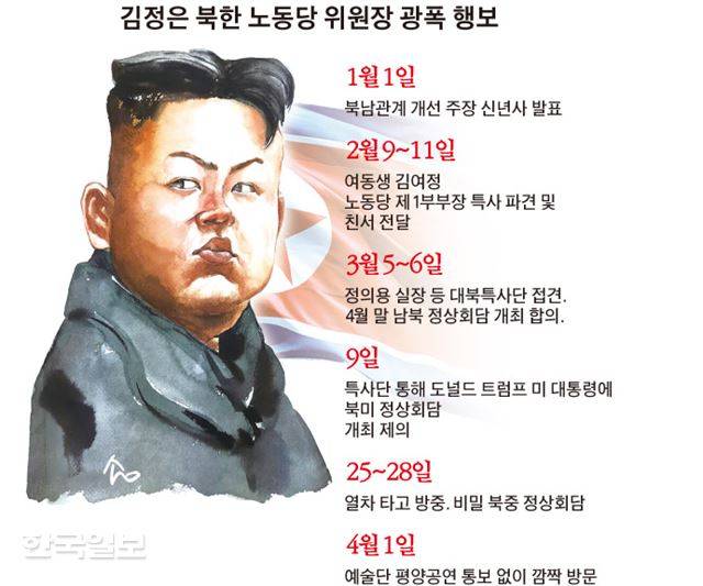 전문가들은 그의 변신이 철저한 계산 하에 이뤄지고 있다고 분석한다. 박원곤 한동대 국제지역학과 교수는 “핵 무력 개발 및 완성까지 속도감 있는 진행을 보면 북한이 명확한 로드맵을 짜고 일을 추진하고 있는 것 같다”고 했다. 정부 고위 관계자도 한반도의 급격한 정세 변화를 “북한 계획대로 움직이고 있는 것”이라고 봤다.
