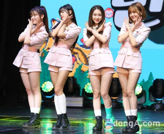 그룹 오마이걸이 3일 오전 서울 중구 남대문 메사에서 열린 새 팝업앨범 '바나나 알러지 워숭이' 쇼케이스에 참석해 포토타임을 하고 있다.