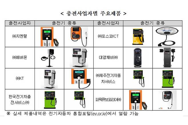 비공용 완속충전기를 설치하려는 경우에는 전기차 충전소 누리집에 등록된 10개 제품 중 설치를 원하는 충전기를 선택해 대영채비, 피엔이시스템즈 등 충전기 제조사에 신청하면 된다.