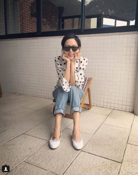 사진 속 김나영은 80년대를 연상케 하는 복고 안경을 쓴 채 튤립을 들고 있다. 또 다른 사진에서는 도트 무늬 셔츠에 청바지와 독특한 선글라스를 매치했다.