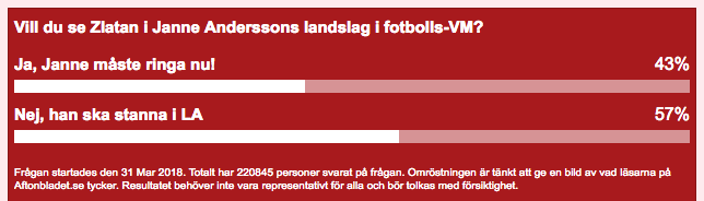 2. '즐라탄이 월드컵 가야하는가?' 설문에 20만 명 이상 투표 참가