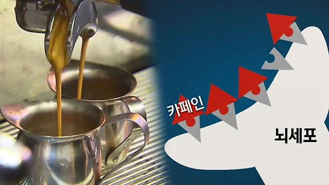 원리는 이렇습니다. 뇌가 활동하면 뇌 활동의 부산물인 아데노신이라는 피로물질이 나옵니다. 이 아데노신이라는 물질이 뇌세포 수용기(receptor)에 붙어서 피곤함을 느끼게 되는데요, 잠을 자게 되면 이 아데노신이 없어지면서 피곤이 풀리는 겁니다. 근데 이 아데노신과 모양이 닮은 게 바로 카페인입니다. 카페인이 수용기에 붙으면 반대로 각성 상태가 되는 건데요. '커피냅(coffee nap)'은 바로 커피의 각성효과와 조금이라도 피로를 풀어주는 쪽잠효과를 동시에 가장 효과적으로 보게끔 하는 방법입니다.