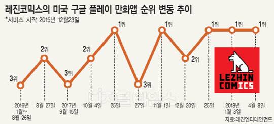 마블코믹스, DC코믹스 등 현지 만화앱을 제치고 매출 1위를 차지한 한국산 웹툰 플랫폼은 레진코믹스가 유일하다.